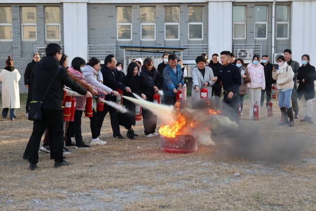 讲座后,全体人员在16号楼北侧开展了消防安全演练,实验员老师按照教官的指导,迅速有序地进行了灭火扑救等操作。