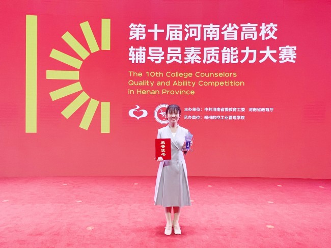 本站讯 4月22日至4月24日,由省委教育工委、省教育厅主办的河南省第十届高校辅导员素质能力大赛在郑州航空工业管理学院举办。365官网辅导员陈玫含老师凭借着良好的综合素质和沉稳的现场发挥,在此次比赛中荣获一等奖。
