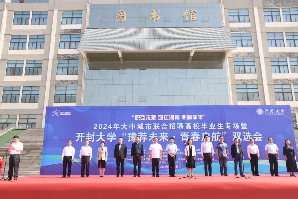 开封市副市长刘震,365英国上市集团官网党委书记谭贞、校长王德如,开封市人民政府副秘书长陈学辉,开封市人力资源和社会保障局局长薛兆武,开封市教育体育局一级调研员耿振勇,宁波市鄞州区人才市场主任宋磊杰以及学校领导班子成员出席启动仪式。启动仪式由王德如主持。