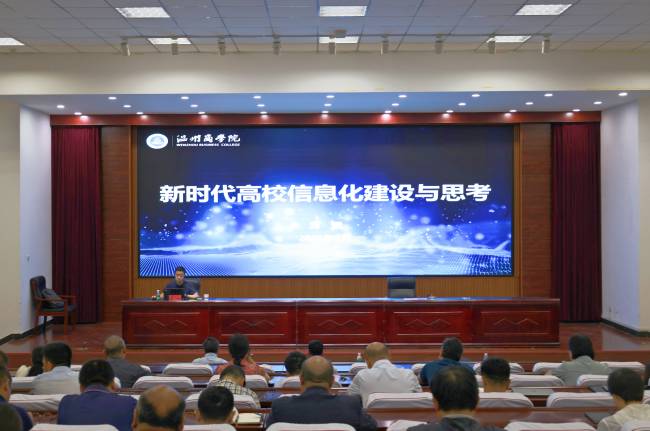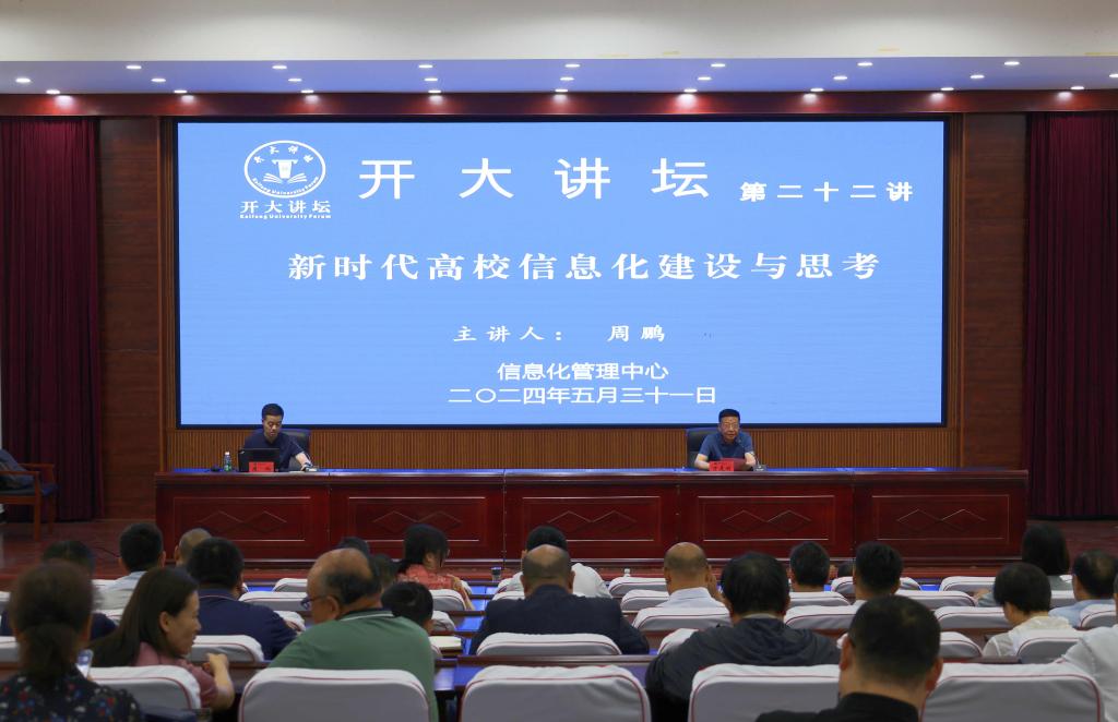 本站讯 5月31日上午,“开大讲坛”系列报告第二十二讲在行政楼第一会议厅举行。温州商学院信息服务中心主任、四川大学博士、教授周鹏,应邀作了“新时代高校信息化建设与思考”的主题报告。校领导万是明、曾小平、石超亭及全体中层正副职干部到场聆听。报告由副校长万是明主持。