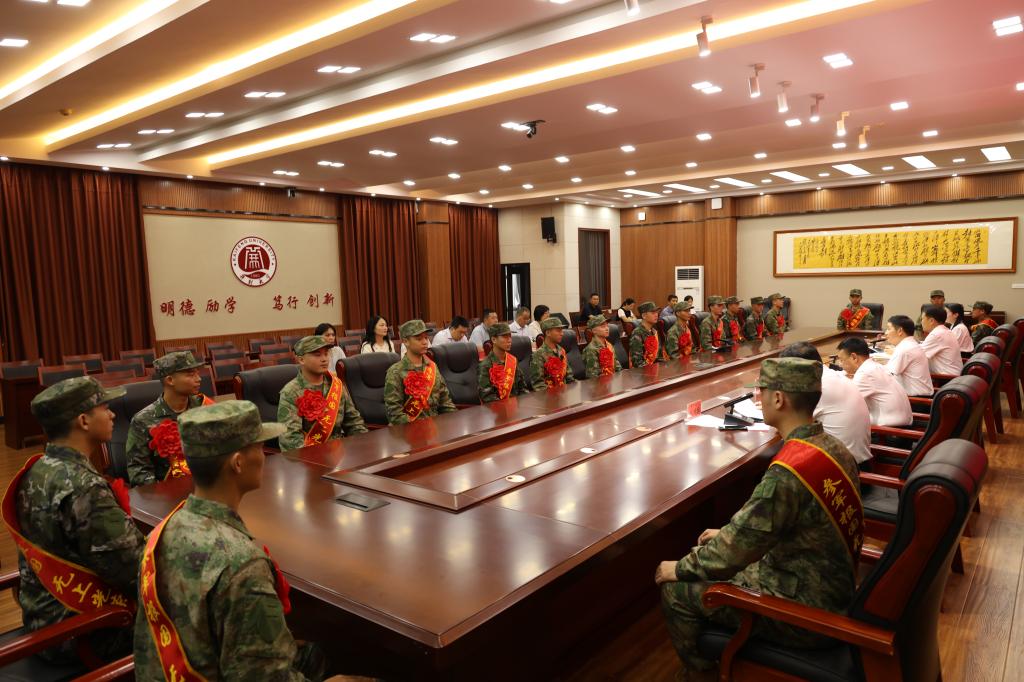 副校长万是明,相关学院领导及18名入伍学生参加仪式。