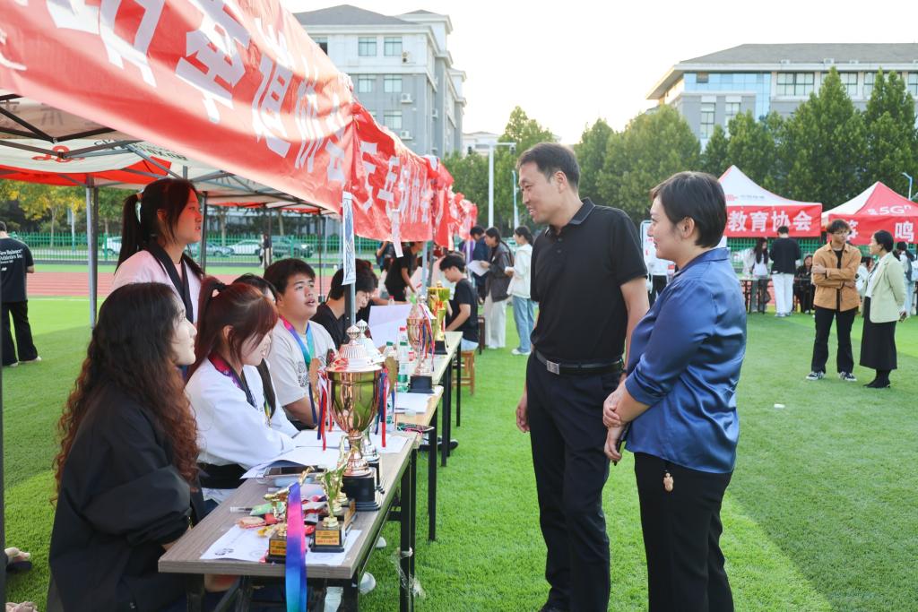 本站讯 9月25日,由校团委主办,智能制造学院、材料与化学工程学院、文化与旅游学院联合承办的社团文化周在校东操场活力启幕。校党委副书记张合参加活动。