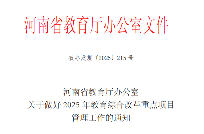 (来源:搜狐)近日,河南省教育厅办公室印发《关于做好2025年教育综合改革重点项目管理工作的通知》(教办发规〔2025〕215号),校长王德如主持的《职业院校专业对接产业的优化机制改革》项目,成功入选2025年河南省教育综合改革重点项目。