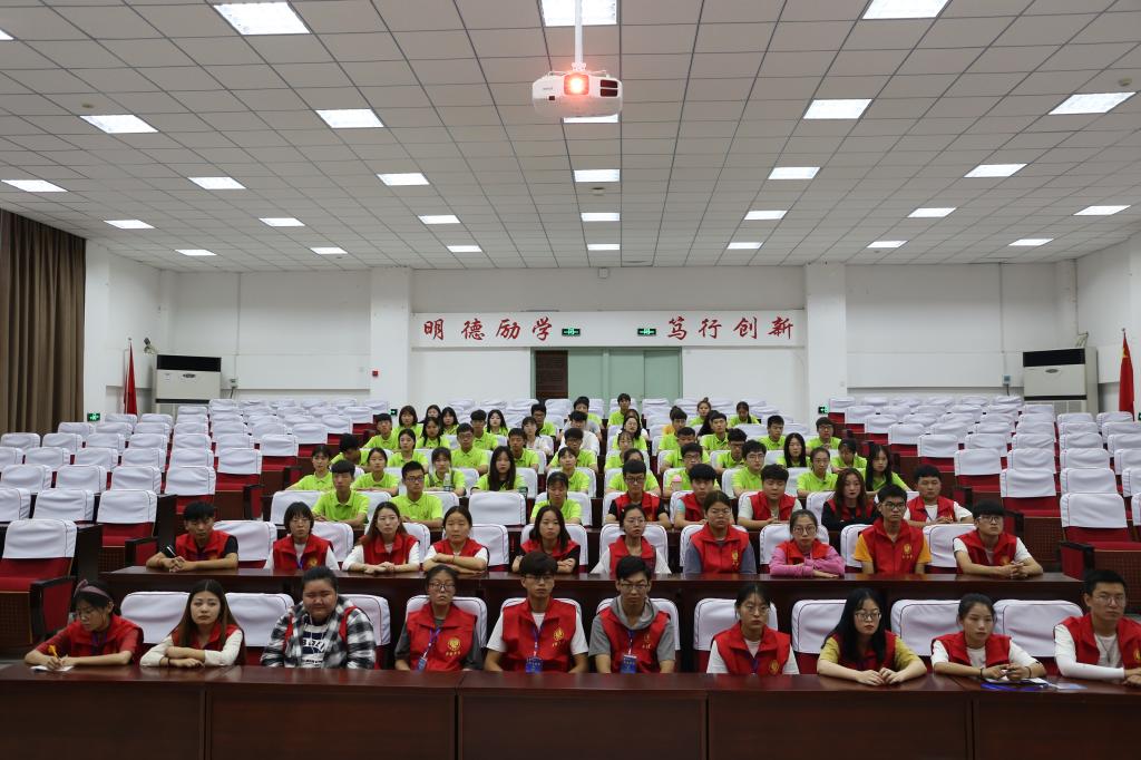 本站讯 为做好2019级迎新工作,提高志愿者服务水平,校团委于9月6日下午在行政楼一楼报告厅召开2019年迎新志愿者培训大会,党委委员、组织部部长赵海胜,保卫处处长贾晨阳、组织部副部长李鹏,学工部副部长杜瑞,以及参与迎新工作的志愿者们参加会议,会议由团委副书记吴文静主持。