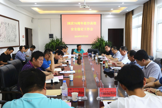 驻汴高校保卫处负责人就本校迎接国庆70周年维稳安保工作的准备情况、风险隐患排查情况、存在的困难、化解措施等方面的工作进行了专题汇报。