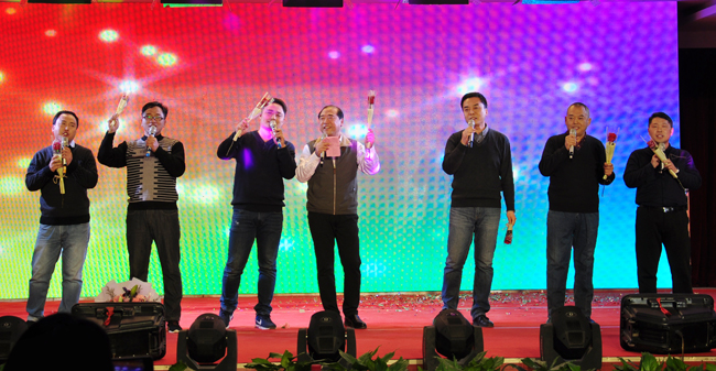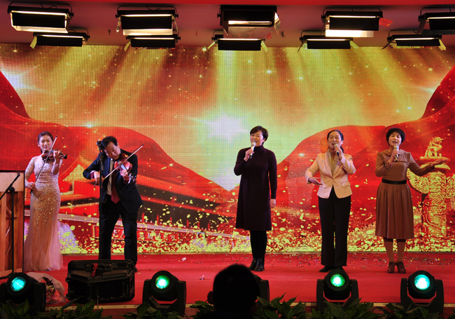 联欢会在校领导与365官网合唱团共同演唱的《春天的故事》、《我的祖国》中拉开了帷幕。在联欢会上,陈书记演唱了歌曲《不白活一回》,宋校长、储书记和365官网书法爱好者现场泼墨挥毫为大家送上了新春祝福。优美动听的歌曲,饱含深情的朗诵,引人入胜的器乐演奏,高雅清新古典舞,节奏欢快的拉丁舞,幽默搞笑的相声,妙趣横生的魔幻秀,饱含深情的情景剧、舞台剧精彩纷呈,高潮迭起,赢得了在场教职工的阵阵喝彩和掌声。期间的抽奖环节,更是给联欢会增添了喜庆气氛。联欢会在校领导陈灿、赵辉、李新春、成芳共同演唱的《毛主席的话儿记心上》的歌声中圆满落下帷幕。