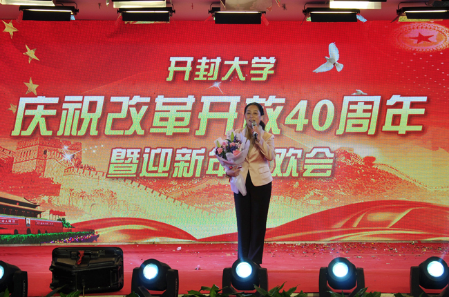 校党委书记陈灿在联欢会上致辞,她代表学校党委向全校师生、离退休老同志表示了问候和祝福。陈书记表示,2018年全体开大人以习近平新时代中国特色社会主义思想为指引,全面贯彻党的十九大精神和全国教育大会精神,不驰于空想、不骛于虚声,聚力攻坚,踏实奋斗,浓墨重彩地书写了学校各项事业发展的奋进之笔,展望2019年,面对高等教育千帆竞发、百舸争流的态势,面对不进则退、慢进亦退的严峻挑战,衷心希望全校师生同心同德、迎难而上,用奉献诠释责任、用担当托举梦想,力争以更优异的成绩向中华人民共和国成立70周年献礼,用今天的行动浇筑开大明天的辉煌。