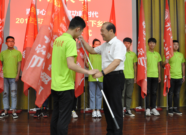 储书记为即将出征的志愿服务队授旗