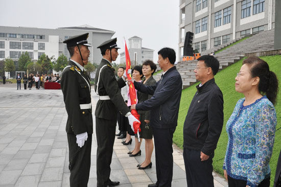 旗手从校长宋志敏手中迎取国旗