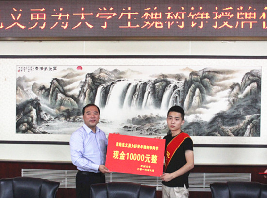 校领导为魏树铮同学颁发奖金