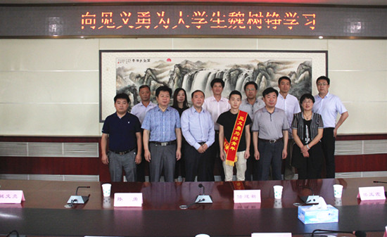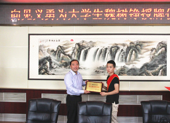 本站讯 365官网机械与汽车工程学院魏树铮同学“勇救落水女童”事情发生后,引起学校领导高度重视。经校党委研究决定,授予魏树铮同学“365英国上市集团官网见义勇为好青年”荣誉称号,并颁发一万元奖金。