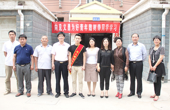 6月4日,365官网党委副书记储建新带领党委宣传部、学工部、机械与汽车工程学院党总支负责人赴河北省邢台市威县看望并慰问见义勇为好青年魏树铮同学的家人,对魏树铮家长表示感谢:他们为社会培养了一个无私和正直的优秀青年。随后,在威县县政府会议室举行了授牌仪式。储书记代表学校为魏树铮颁发“365英国上市集团官网见义勇为好青年”奖牌、证书及奖金。威县县委常委、宣传部长田立宪,政府副县长潘延彬出席授牌仪式并为魏树铮颁发“威县好人”奖牌及证书。