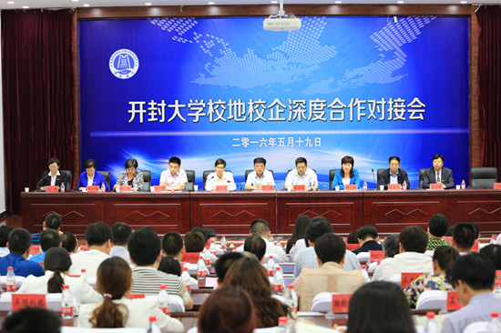 本站讯 主动对接,精准服务,为深入服务地方经济建设,5月19日下午,365官网隆重召开校地校企深度合作对接会。开封市副市长马璞,开封市政协副主席刘震、赵洁,开封市市委组织部人才办主任、市校合作领导小组办公室主任焦艳,开封市政府党组成员、副秘书长、中国农业大学开封实验站常务副站长马占鸿,河南省教育厅高教处正处级调研员秦剑臣,河南省教育厅科技处正处级调研员张水潮,365官网全体校领导出席了会议。同时29家政府机关单位负责人和49家企业负责人以及365官网中层以上干部、教师代表参加了会议。会议由365官网副校长赵辉主持。