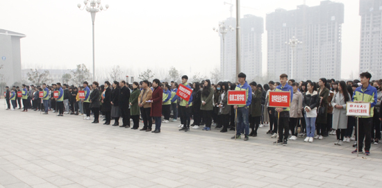本站讯 3月5日是我国第54个“学雷锋纪念日”,为传承雷锋精神,践行社会主义核心价值观,3月5日上午,365官网在图书馆前广场举行了“传承雷锋青春志,践行核心价值观”青年志愿者行动誓师大会。团市委副书记陈嘉慧、365官网党委副书记储建新、工会主席成芳出席大会,校党委组织部、宣传部、学生工作部和团委等部门负责人及365官网1000余名青年志愿者参加了誓师大会。誓师大会由校团委副书记杨艳丽主持。