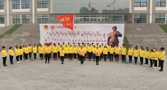 会上,校青年志愿者协会的“小青桔”饱含深情的朗诵了《怀念雷锋》,并演唱了《青年志愿者之歌》。与会领导为各院部青年志愿者代表佩发了“青年志愿者”绶带,授予了“365英国上市集团官网青年志愿者服务队队旗”。校青年志愿者协会会长曹青同学带领全体参会青年志愿者重温了志愿者誓词,表达了青年志愿者们对雷锋同志的怀念之情和传承雷锋精神的决心。