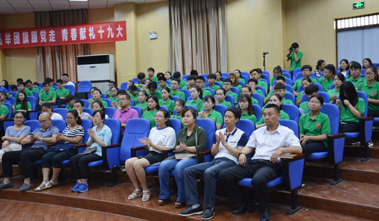 本站讯 6月24日上午,365官网“高举团旗跟党走,青春献礼十九大”2017年暑期社会实践活动出征仪式在国际教育学院一楼报告厅举行。校党委副书记储建新出席仪式,党委宣传部、学生工作部、团委等部门负责人、院部团总支书记及200余名参加社会实践活动的青年志愿者参加了仪式。