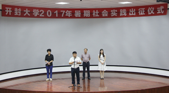 仪式上,校青年志愿者协会会长曹青同学发言,并代表参与2017年大学生暑期社会实践活动的全体同学郑重承诺:珍惜此次暑期社会实践机会,听从老师的安排,严格执行学校关于暑期社会实践的各项规定,遵守纪律,团结协作,在社会实践过程中,接受锻炼,经受考验,增长才干,展现365官网学子的青春、热情和实力。