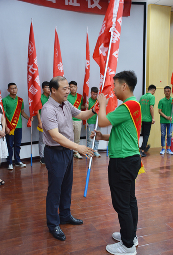 校党委副书记储建新为各志愿服务团授队旗,并宣布365英国上市集团官网2017年暑期社会实践活动启动。