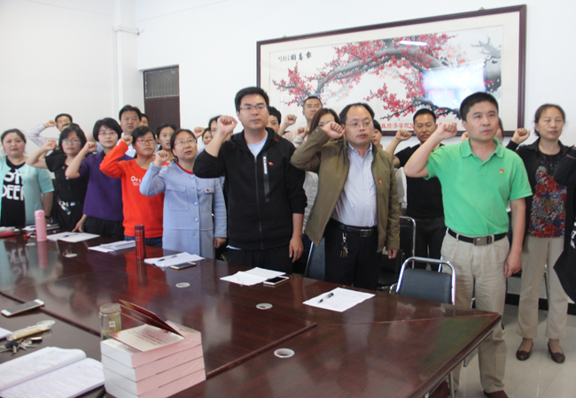 5月7日下午,全体与会人员到财政经济学院观摩学院教工党支部“5+N”主题党日活动。活动中,全体人员面对党旗重温入党誓词;4名教师诵读了《共产党宣言》节选;学院党总支书记王茜做了题为《在“赶考”中永葆共产党人初心》的微党课;全体党员为4名同志过了集体政治生日,并送上祝福,希望他们在今后的工作中,时刻牢记党的宗旨,永葆共产党员的先进性。