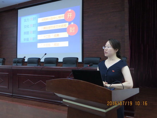 本站讯6月19日上午,在“两学一做”学习教育中,以“学党章党规、系列讲话、做合格党员”为主题的微党课比赛在行政楼一楼报告厅举行。来自全校13个党总支的18名党员教师参加了比赛,党委副书记储建新出席了比赛。比赛的评委由开封市委宣传部、市委党校及兄弟院校的专家担任。比赛由校党委组织部部长秦雪峰主持。