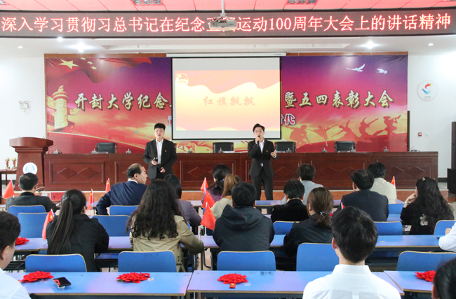 本站讯 4月30日下午,365英国上市集团官网纪念五四运动100周年暨五四表彰大会在土木建筑工程学院六楼会议厅举行。校领导陈灿、储建新、成芳、李治、马林强出席大会,学生工作委员会成员单位负责人,各院部党总支书记、副书记、团总支书记,先进学生代表及新团员近400人参加了大会。会议由校党委副书记储建新主持。
