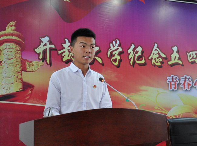 电子电气工程学院2017级学生徐文涛作为2018年度365英国上市集团官网“优秀共青团员”代表发言。他向全校同学发出倡议,作为青年大学生,要牢记习近平总书记提出的新时代中国青年的“六个要”的要求,为实现伟大中国梦而努力奋斗。