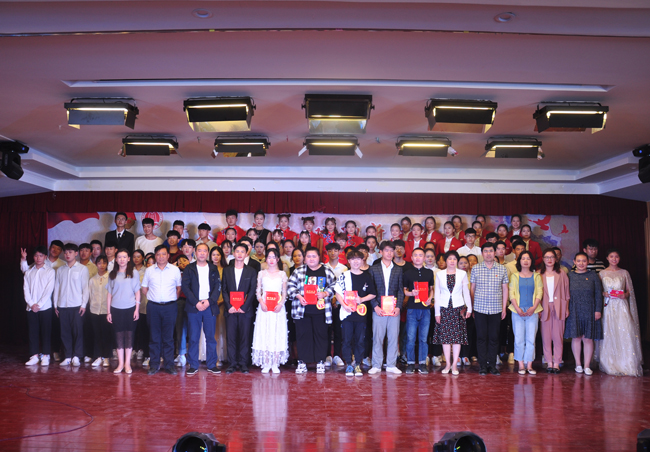 比赛在《强国一代有我在》合唱中圆满结束。最后,赵海胜老师为此次比赛选手点评,校领导和评委与演出人员一同合影留念。