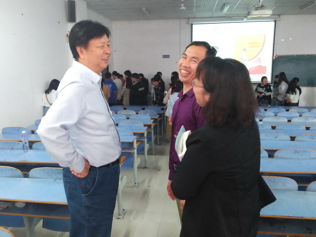 宋校长在听课中认真做笔记,还特别关注了学生的听课状态。下课后,宋校长和任课教师进行了亲切的交谈,充分肯定了冯魁老师的授课效果,并要求思想政治理论教研部进一步加强教研活动,扎实推进党的十九大精神和习近平新时代中国特色社会主义思想和党的十九大精神的“三进”工作。