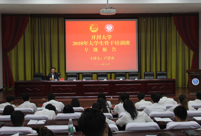 开班仪式结束后,365官网思想政治教研部、形势与政策教研室主任卢慧勇为大学生骨干做了题为《共筑中国梦 同做圆梦人》的十九大报告精神的讲座。