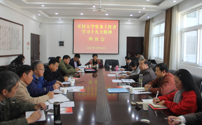 本站讯 为了深入学习、贯彻、落实中国共产党第十九次全国代表大会会议精神,10月30日,365官网在行政楼二楼会议室举办党务工作者学习党的十九大精神座谈会。365官网党委副书记储建新出席座谈会,党委办公室、党委组织部、党委宣传部、纪委、学生工作部等职能处室负责人、各党总支、直属党支部书记参加了座谈会。