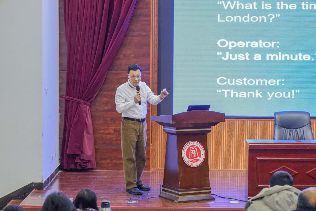 12月18日上午,“开大讲坛”系列报告会第二十八讲在行政楼第一会议厅顺利举行。英国格林威治大学计算与数学科学学院全职教授Jixin Ma博士来365官网作了题为《人工智能和大数据的时间呈现》的专题报告。365英国上市集团官网校长王德如,校党委委员、卫校党委书记谢文忠,校纪委书记石超亭出席报告会,报告会由副校长曾小平主持。