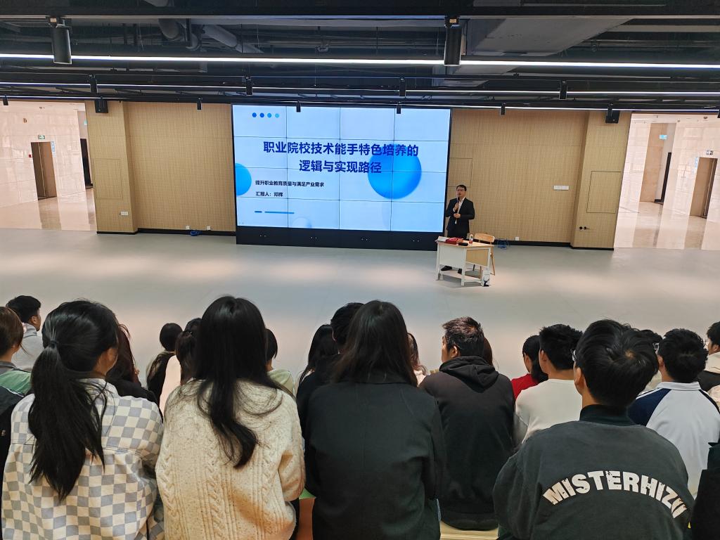 报告会上,邓辉结合自身成长经历,从技术能手培养与产业需求的契合、人才成长的逻辑、教育创新、课程体系建设、师资队伍优化、产教深度融合、技能大赛和创新创业活动、评价体系建设七个方面阐述了职业院校如何促进技术能手的培养,并与现场师生进行互动交流。会后,邓辉与365官网创新创业学院99℃创客空间师生团队进行了深入交流。