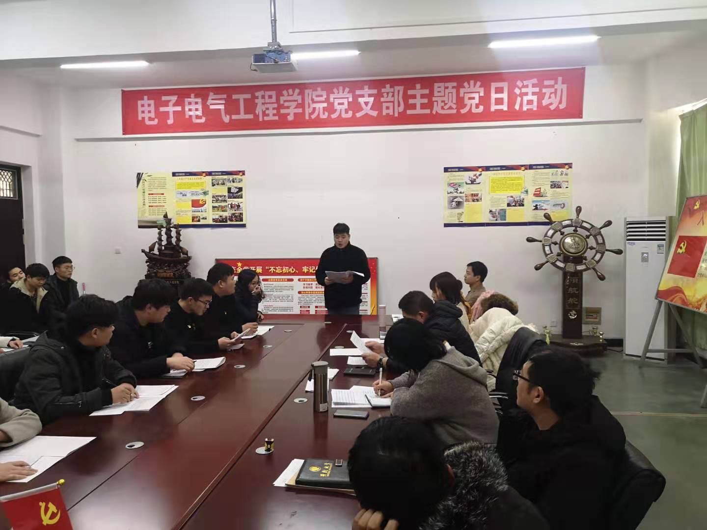 2019年12月19日365英国上市集团官网电子电气工程学院“预备党员转正发展大会”在6#512成功举行,本次大会主要围绕“预备党员是否能按期转正”展开讨论,大会由电子电气工程学院党总支副书记杨辉主持,参加此次大会的还有院党支部老师、七名申请转正的预备党员及群众。