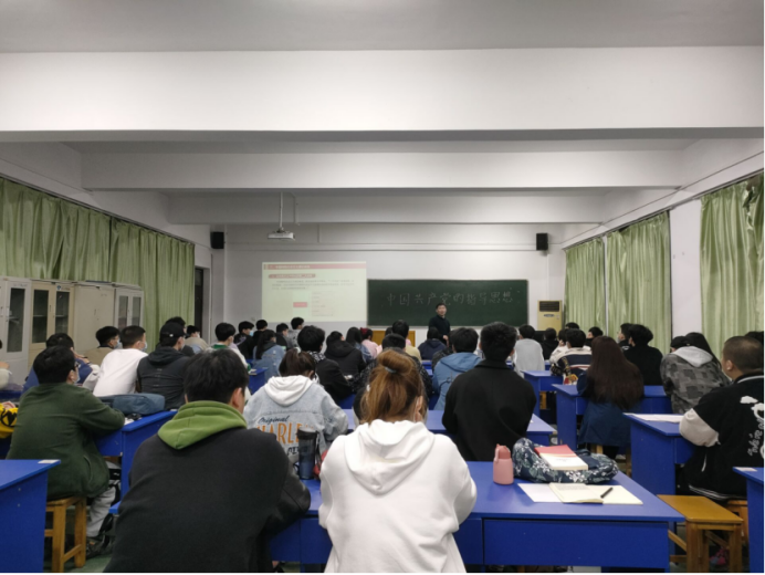 党课伊始,赵帅老师引用生活中的例子让学员认识到自己已经成年,不再是青少年,要有正确的思想,从而引出今天的课程主题“中国共产党的指导思想”。提出本节课的学习目标:马克思列宁主义,毛泽东思想,邓小平理论,“三个代表”重要思想,科学发展观,习近平新时代中国特色社会主义思想。赵帅老师用通俗易懂的言语让同学们理解“中国共产党指导思想”。课堂氛围也被调动,让同学们更加坚定信仰,树立正确的世界观,价值观。赵帅老师在课堂最后向学员们发出期许:这节课不止让我们正确认识党的指导思想,也是让同学们在以后的学习和做事中树立正确的思想。并且告诉学员加入中国共产党不止是一种荣耀,也是对我们思想的升华。