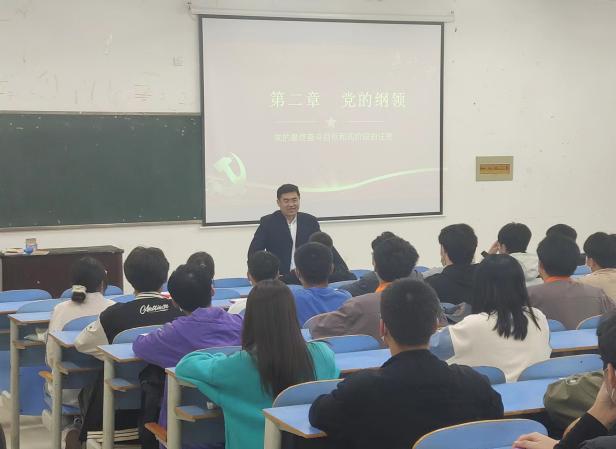 开班仪式结束后,校党委委员、党委组织统战部部长赵海胜为全体学员上第一节党课。