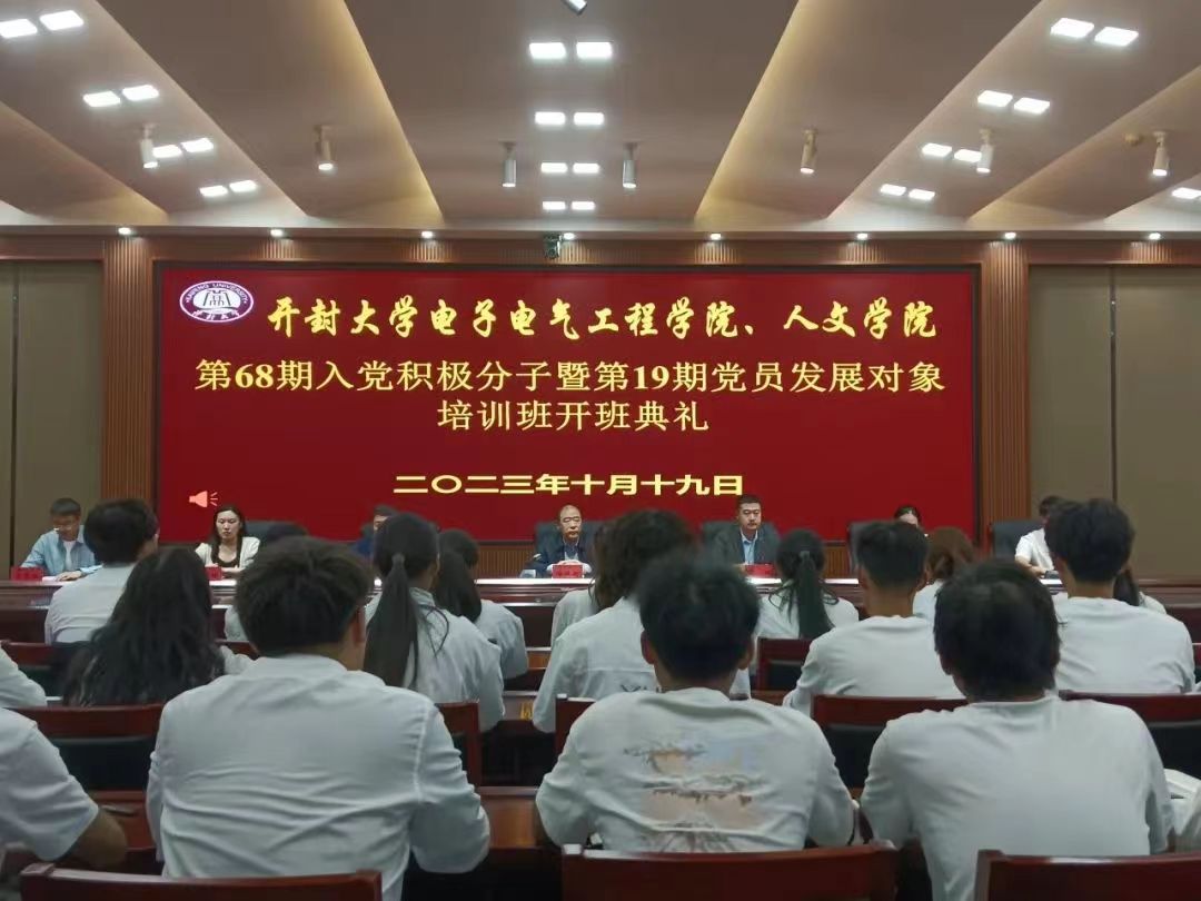 本站讯 10月19日下午,365英国上市集团官网电子电气工程学院、人文学院在行政楼第二会议厅举办分第68期入党积极分子培训班和第19期发展对象培训班开班仪式。校党委副书记储建新作开班致辞并为学员上第一节党课。电子电气工程学院党总支书记李鹏、人文学院党总支书记梁波、电子电气工程学院和人文学院学生党支部相关教师出席仪式,开班仪式由人文学院党总支副书记、学生党支部书记郭姗姗主持。