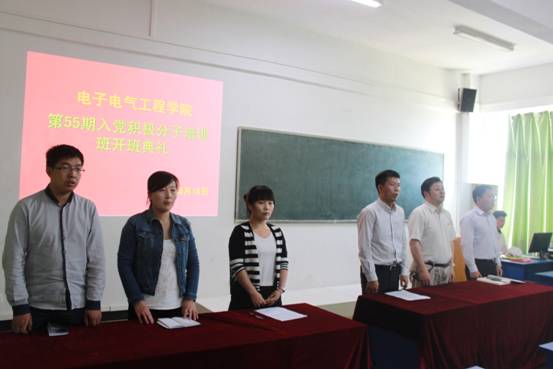典礼开始,先介绍到场的领导和老师,之后全体起立,在雄壮的《国歌》中开始。接下来,电子电气工程学院林莉莉老师宣读了55期培训班的安排和工作要求。随后,365英国上市集团官网组织部长副部长孙璞辰讲话,他首先对参加本期业余党校培训班的全体学员表示热烈的祝贺,就如何做一名优秀入党积极分子提出了=希望和要求。最后,院党总支书记徐纪珂致辞,要大家明确培训意义,提高思想认识;端正学习态度,提高学习效果;遵守党课纪律,科学安排,取得优异成绩;从身边小事做起,践行实际行动,鼓励同学们奋发向上,早日成为一名合格的党员,衷心祝愿本期培训班取得圆满成功。