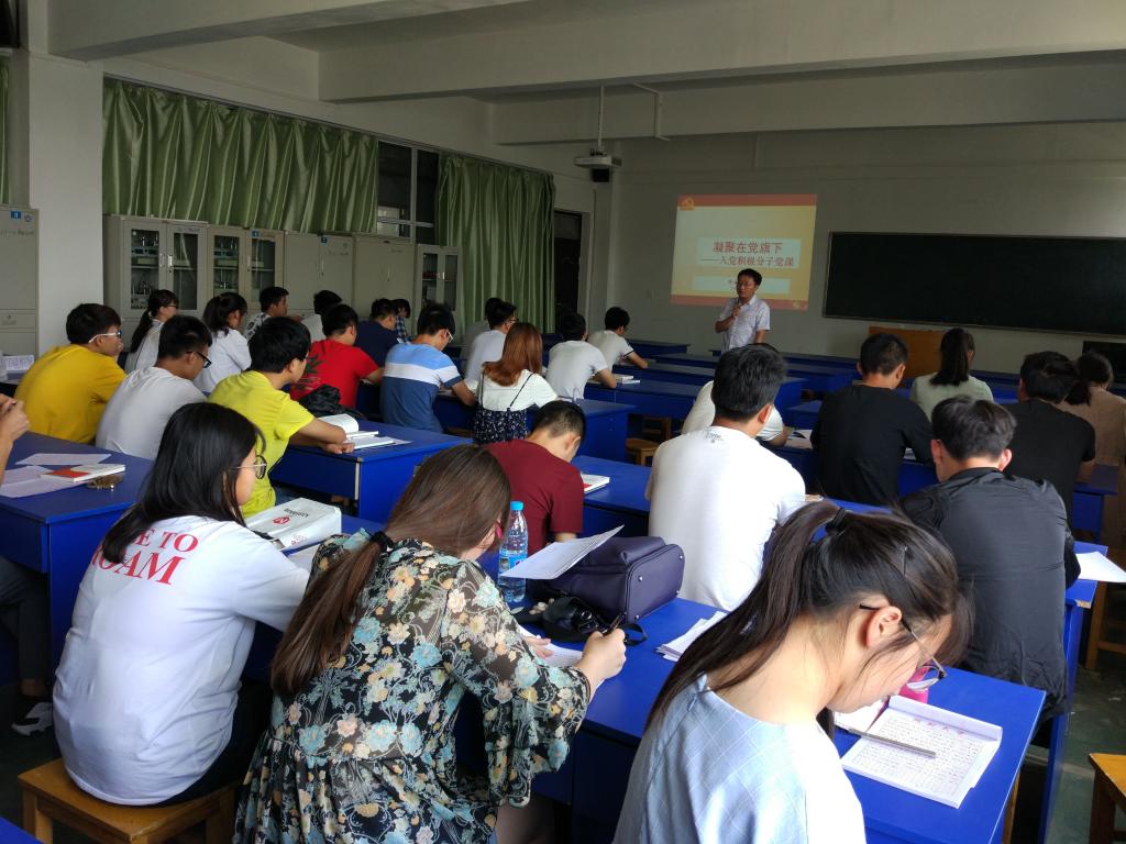 5月23日,电子电气工程学院第55期入党积极分子分党校继续在我院教学楼405教室上课。本次授课老师为电子电气工程学院党总支副书记边疆老师。本次党课是我院此次分党校的第三讲内容,边书记以“凝聚在党旗下”为主题,给学生进行了一堂生动的党课。边书记用生动和幽默的语言向同学谈了作为一名当代的青年大学生对于加入中国共产党这一光荣团体的认识,获得了同学的一致好评。