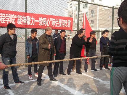 此次比赛分为两个阶段,第一阶段,学院全体教师按照专业归入班级,以班级为单位进行拔河比赛;第二阶段,全体教师单独组队与学生干部方队进行了对抗交流。比赛中,参赛队员密切合作、团结一致、奋力拼搏,场下拉拉队员加油鼓劲、欢呼声此起彼伏,热闹非凡,整个赛场一片沸腾。