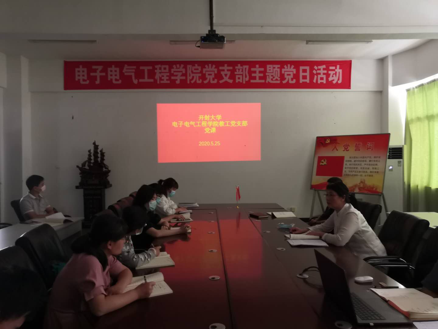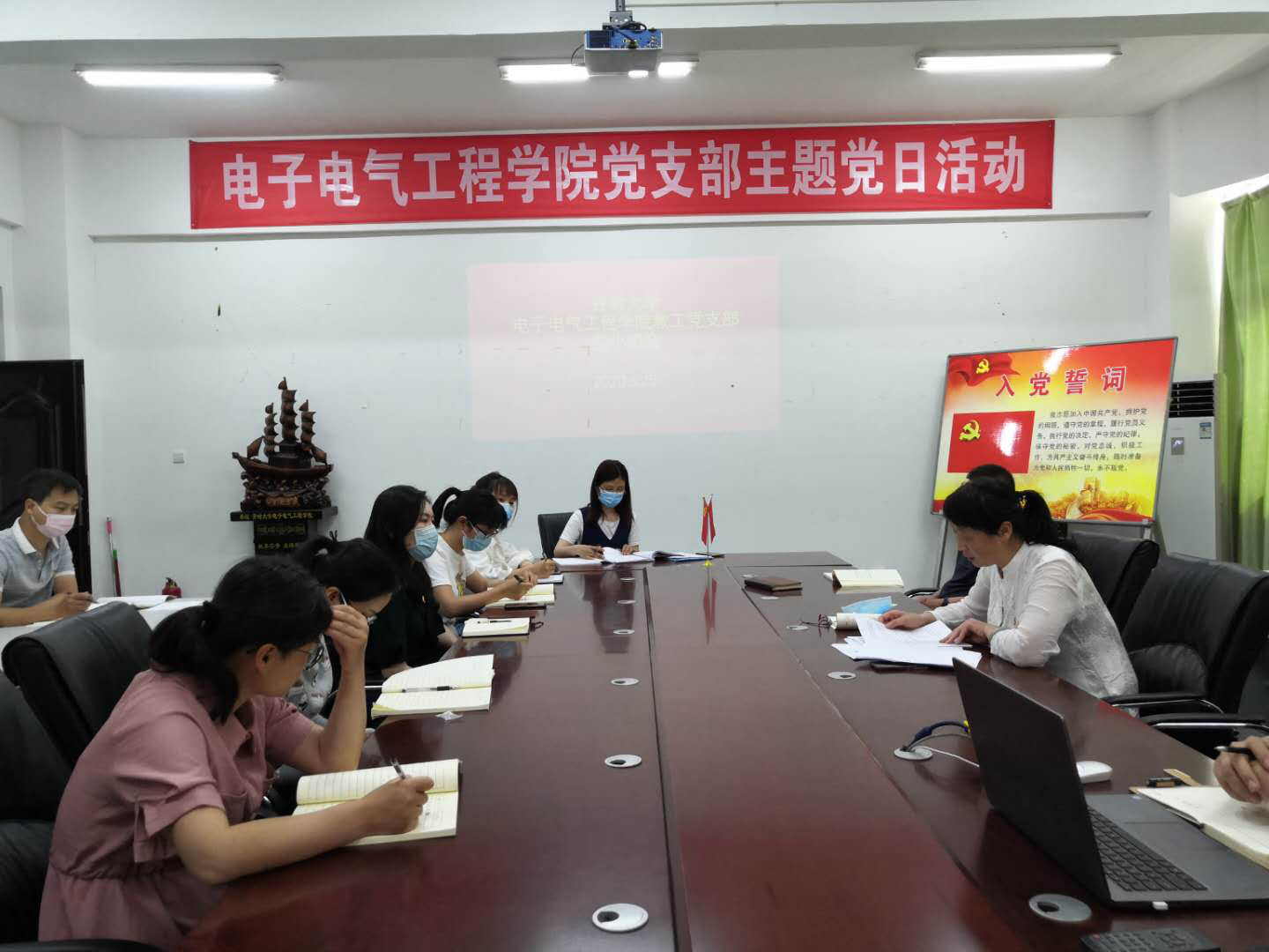 5月25日下午,电子电气工程学院党支部在6号512会议室召开党小组会暨上党课活动,会议由学院总支书记张红艳主持,教工党支部的行政党小组全体党员、教师党小组全体党员共同参加会议并聆听了党课。