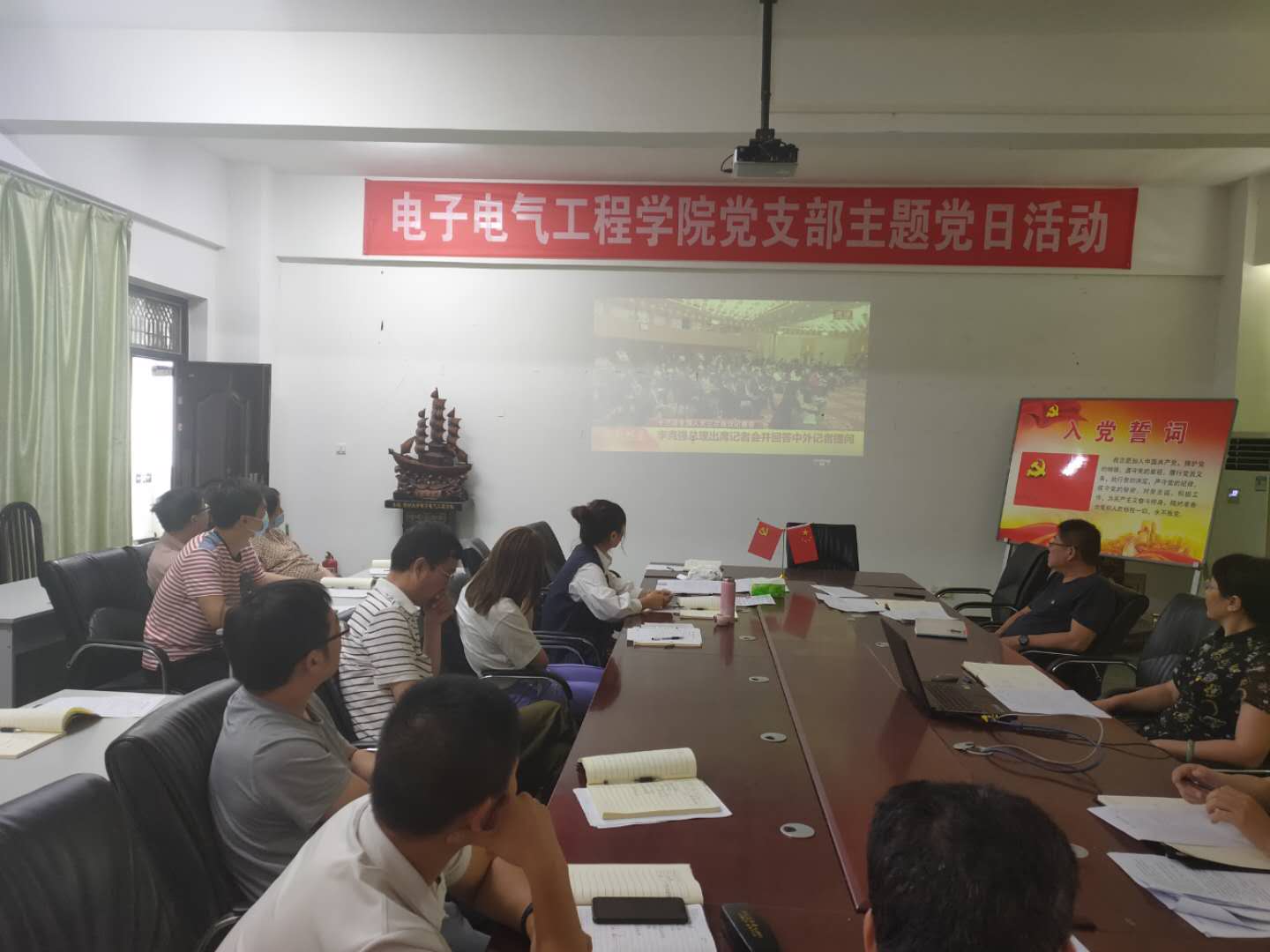 认真学习、贯彻、落实全国“两会”精神、统筹做好学校疫情防控和毕业生就业工作文件和指示精神,让高校毕业生顺利毕业、尽早就业。结合学校学生返校工作精神和要求,充分发挥好党员教师的先锋模范作用,抓实抓细各项措施,确保学校毕业生返校离校工作安全、有序,电子电气工程学院教工支部于6月8日下午3点在512会议室开展了以 “认真学习贯彻全国两会精神,全力抓好毕业生工作落实”为主题的党日活动。校党委副书记储建新、教工支部全体党员参加,活动由支部书记边疆主持。