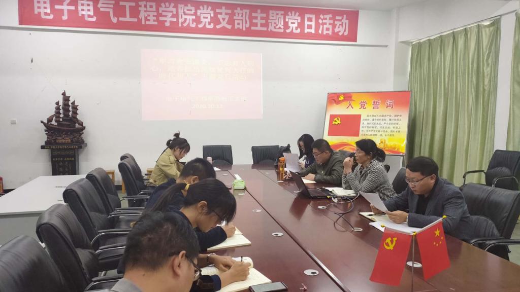 金秋十月,迎来了中华人民共和国成立71周年,71年来,中国共产党领导全国人民以大无畏的革命精神改革开放,取得了前所未有的举世瞩目的成就。为更好的回望历史,让我们有前进发展的动力。10月12日下午4:00,在6号楼512会议室电子电气工程学院教工支部以“学习党史国史,不忘育人初心,培养担当民族复兴大任的时代新人”为主题的“五+N”党日活动,会议由支部书记边疆主持。