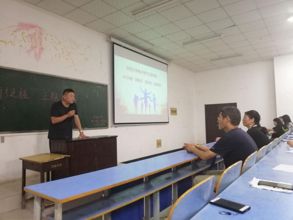 为迎接新学期到来,9月1日下午上午,我院18级全体学生在15号楼135教室召开了“新起点,新征程”主题班会。班会由18级辅导员李俊葳老师主持,校国资处处长王玉杰、学院党总支书记张红艳、副书记杨辉参加了本次会议。