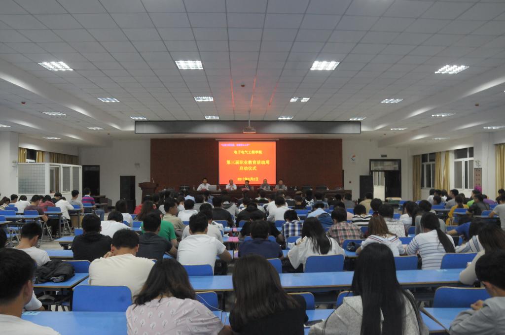 首先,电子电气学院院长高明远致辞,高院长对于学院此次第三届职业教育活动周的意义进行了阐述,并对于活动流程和安排进行了介绍。随后,校企合作处处长杜诗超进行了发言,对当前国家对于专业技能型人才的发展前景进行了分析,并对我院全体学生提出了希望和要求。