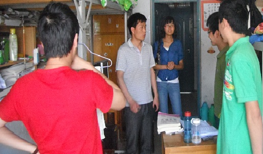 本站讯5月19日中午,我院党总支副书记徐纪珂老师和毕业班辅导员老师,在09级毕业生返校后,前往毕业生所在的10号宿舍楼,来到同学们中间与大家亲切问候。
