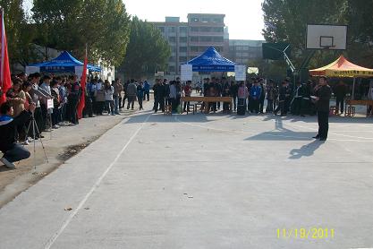举办此次招聘会意在为学生提供更多与社会接触的机会,提高在校学生的求职能力和职业规划意识,从而引导他们合理地进行职业规划,提高职场应聘技巧。招聘会上模拟的有诺基亚、阿里巴巴、新东方、海尔等公司进行招聘。模拟招聘会开始后同学们拿着精心准备的个人简历参加面试,他们排队依次上场,应聘过程中沉着、冷静、自信。
