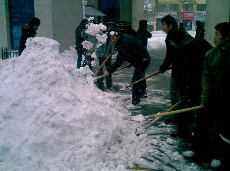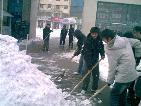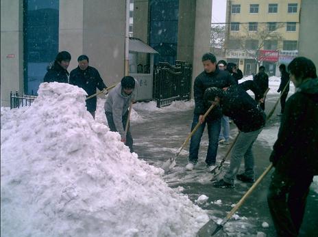 从11月11日开始,开封市区降下了今年首场瑞雪。12日清早,整个开大校园都被厚厚的积雪所覆盖。为了不影响正常的教学活动和师生出行,机电工程学院组织学生在明德广场进行扫雪活动。此次扫雪,机电工程学院共安排了四五十名同学,经过半个多小时的努力,南大门以及明德广场的部分积雪已得到清理,保障了正常的校园交通秩序。