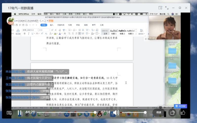 为了进一步加强毕业班学生的思想政治教育工作,充分发挥新时代青年示范引领作用,做好毕业生工作,根据《中共河南省委高校工委 中共河南省教育厅党组关于组织开展向焦作市武陟县中水寨村马明杰等10名大学生优秀群体学习活动的通知》文件精神,带动学生向马明杰为首的诸多青年榜样看齐。5月12日晚7:00通过钉钉直播,电子电气工程学院17级毕业生开展了以“向榜样学习,弘扬时代青春绚丽新风尚”为主题的云班会,班会由17级辅导员林莉莉老师主持。