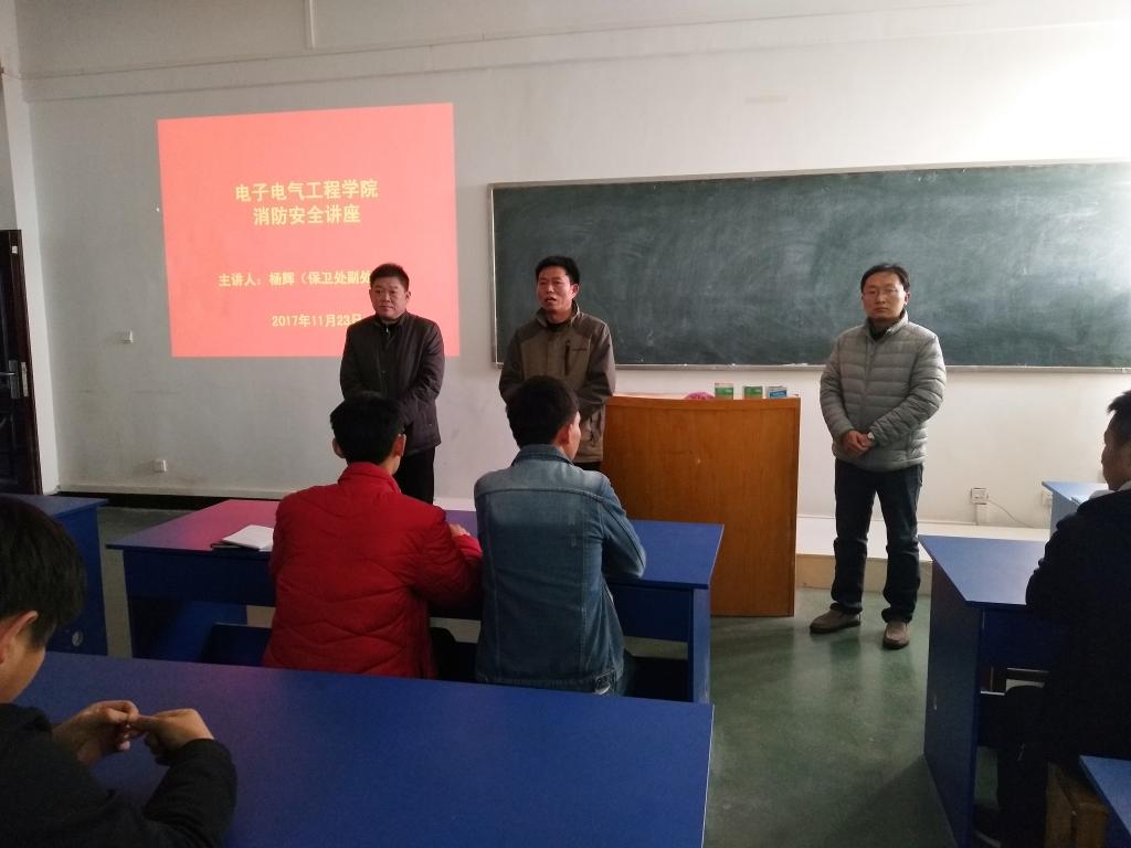 为了增强全体师生的消防安全意识,电子电气工程学院于十一月二十五日下午两点三十分在6号楼405召开了消防安全知识讲座,电气学院党总支书记徐纪珂、副书记边疆、各年级辅导员以及全体宿舍长参加本次会议。并邀请365英国上市集团官网保卫处杨辉杨处长对学生进行消防安全知识培训。