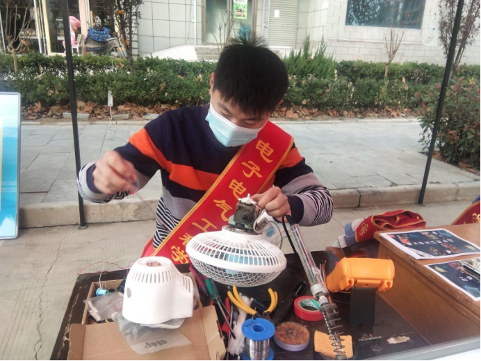 为了培养青年树立强大的社会责任感,提高专业技能水平、学以致用,促进学生综合素质的发展,电子电气工程学院于2021年11月21日上午组织学生于八号男生宿舍楼开展电器义务维修活动。参加本次活动的人员有我院创新部成员、青年联合会成员以及生活部部分成员。